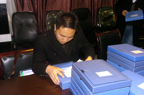 市文明辦胡科長認(rèn)真查看創(chuàng)建檔案
