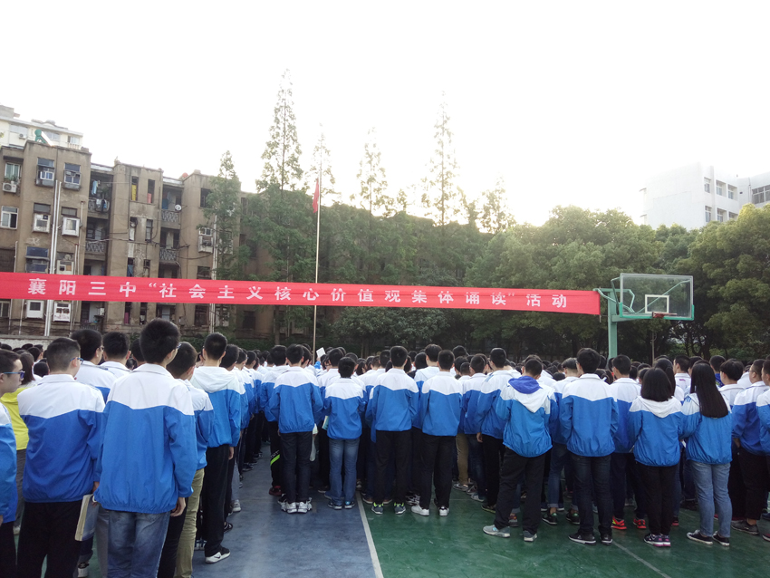 5月9日清晨,襄陽三中開展了“社會主義核心價值觀”集體誦讀活動。本次活動由高二年級副主任喬磊主持,活動目的是通過集體誦讀的形式提高學生對社會主義核心價值觀的重視和認識,也是我校創(chuàng)建全國文明城市、爭創(chuàng)市級文明學校的活動之一。在喬磊老師領讀之下,同學們高聲誦讀“社會主義核心價值觀”和志愿者服務的精神。誦讀結(jié)束后,學生代表發(fā)表講話。教導處副主任梁智杰為本月以來表現(xiàn)優(yōu)異的學生頒發(fā)獎品。