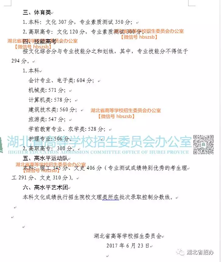 2017年普通高校招生錄取控制分?jǐn)?shù)線
