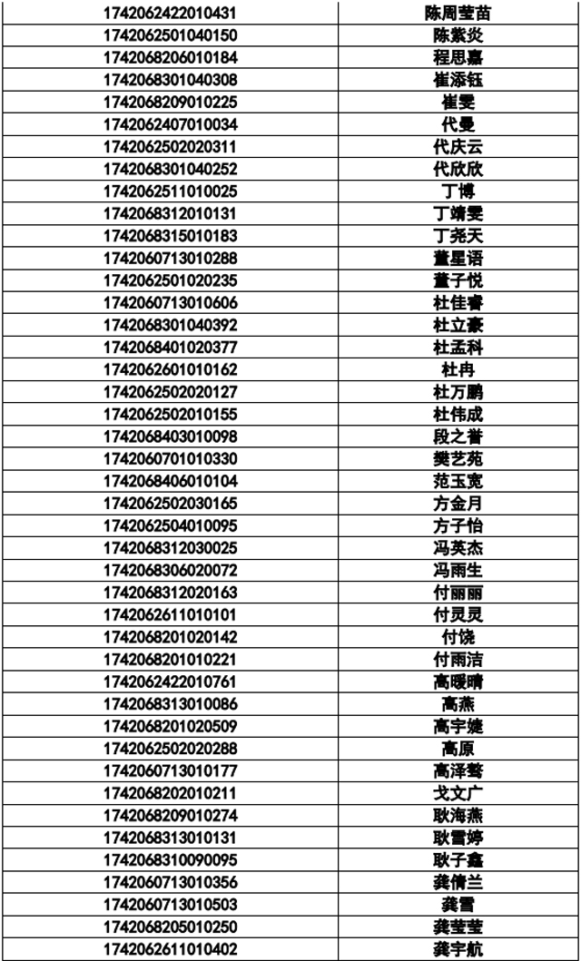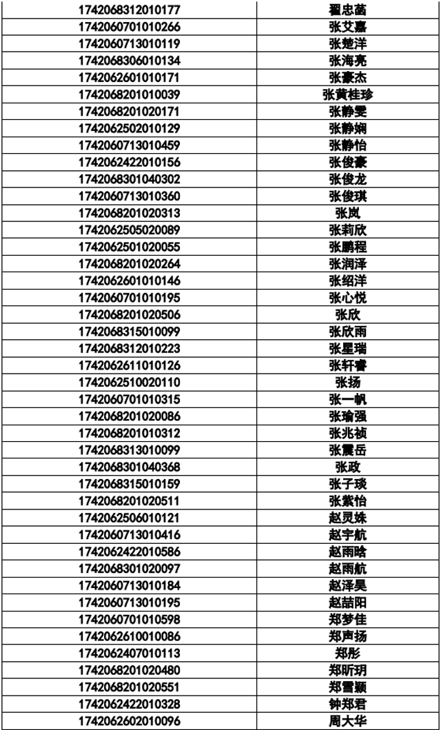 襄陽三中實(shí)驗(yàn)中學(xué)2017年統(tǒng)招名單