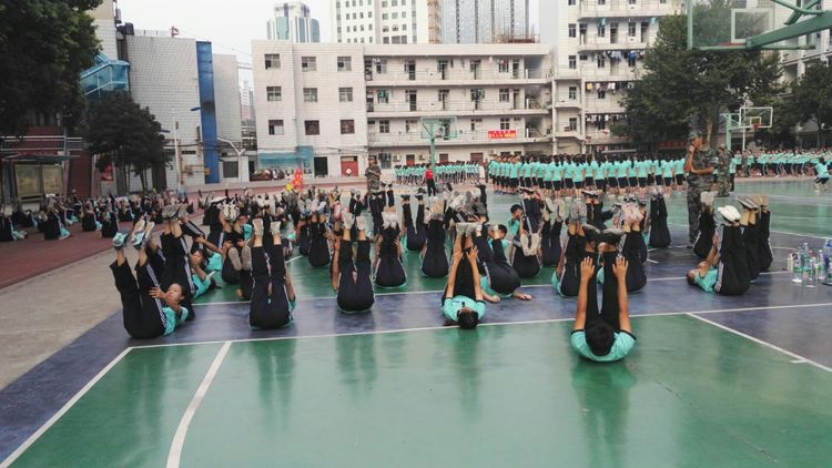 每天清晨,襄陽(yáng)三中的操場(chǎng)上,沸騰著一片蔚藍(lán)色的海洋,整齊的隊(duì)列,矯健的步伐,雄壯的口號(hào)……一張張稚氣未脫的臉上洋溢著青春的夢(mèng)想,一個(gè)個(gè)筆直的軍姿書寫著昂揚(yáng)的斗志。