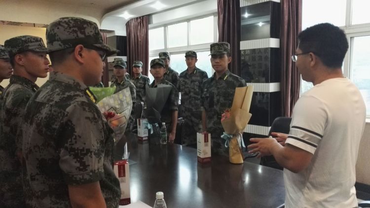 李天艷校長(zhǎng)代表學(xué)校慰問軍訓(xùn)教官們。