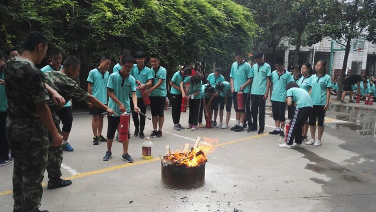 消防戰(zhàn)士在講解使用滅火器要領(lǐng)。我們已經(jīng)躍躍欲試了!