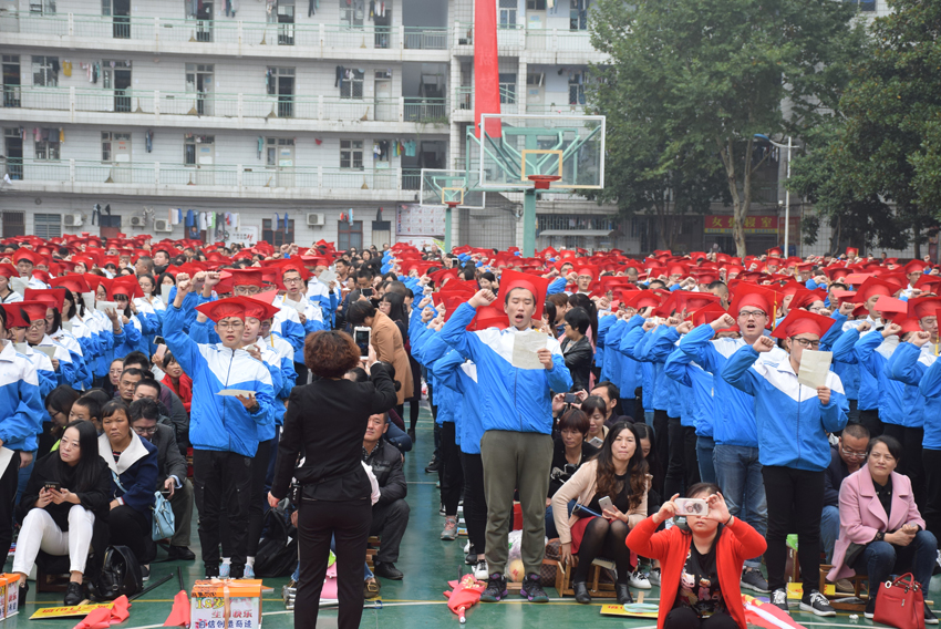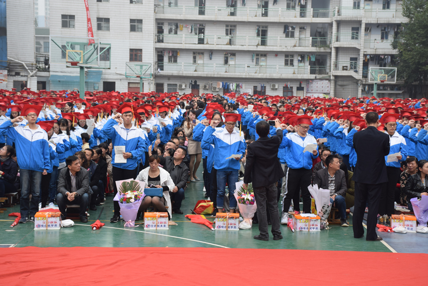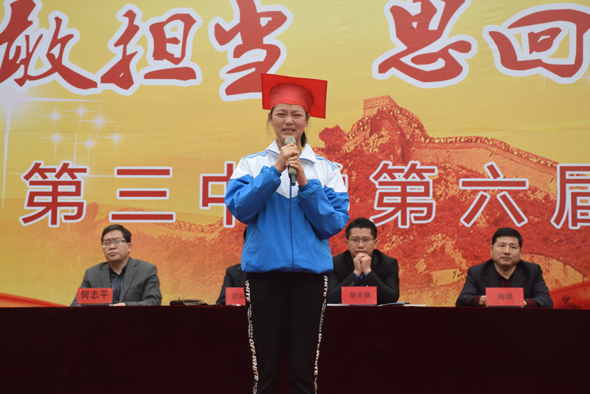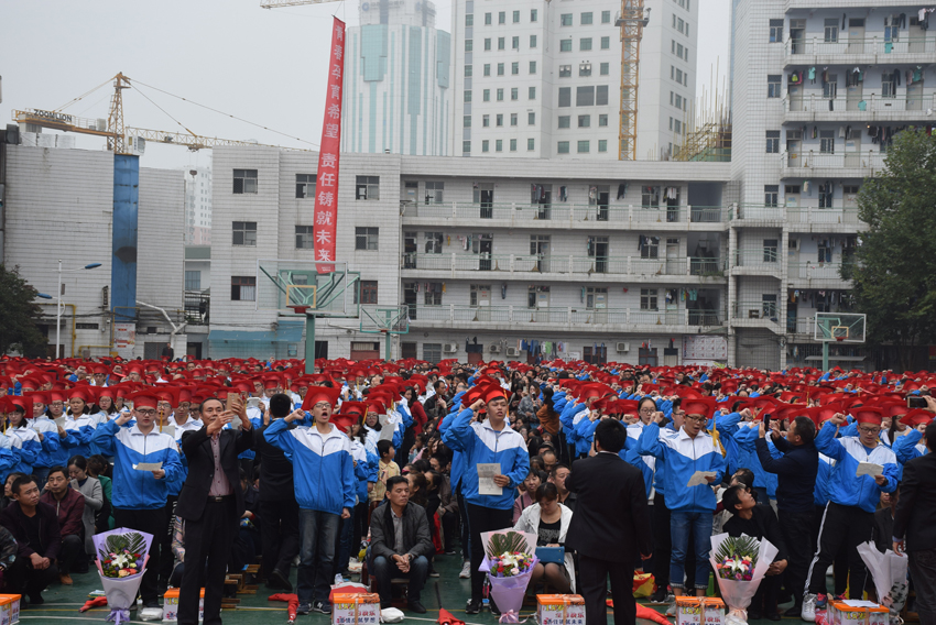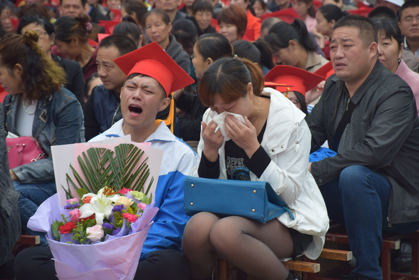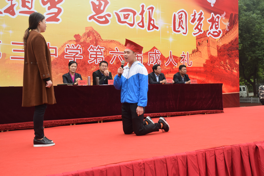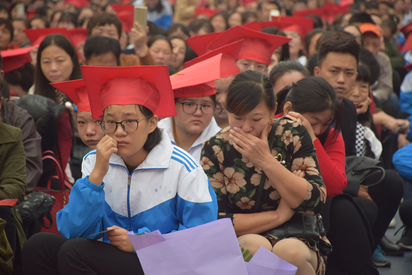 高三(20)班王子琪同學的現(xiàn)場發(fā)言——《感恩的心》將儀式推向了高潮。她選取了日常生活中父母呵護孩子的典型事例,有常年如一日給孩子送飯的,有父母生病瞞著孩子的,有高考一直守在考場外的,個個感人至深。講著講著,家長們已是熱淚盈眶,學生更是淚流滿面。1