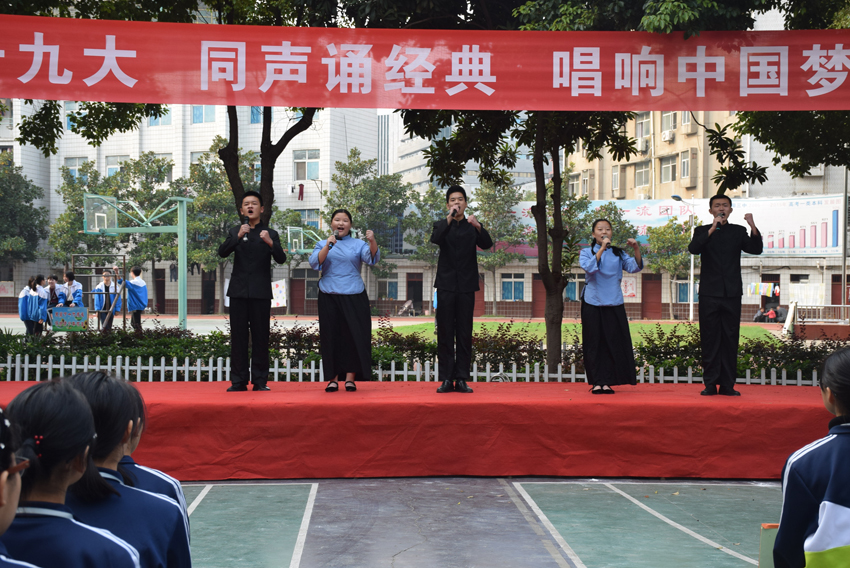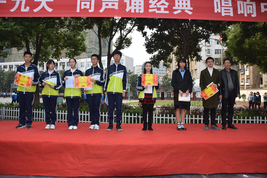 在舉世矚目、舉國歡慶黨的十九大之際,10月23日,襄陽三中特舉辦“歡慶十九大 同聲誦經(jīng)典 唱響中國夢”為主題的詩歌朗誦比賽,共有19支代表隊參加。朗誦比賽內(nèi)容豐富,有頌揚十九大的,有暢想中國夢的,有弘揚傳統(tǒng)文化的。形式多樣,有的一人朗誦,有的二人合誦,有的多人朗誦,有的班級學生配合,有的還著上特色服裝,配上特別的道具。學子朗誦,時而高吭,時而低吟,一次次掀起高潮。 比賽取得圓滿成功,并評出了獎項。比賽結(jié)束后,學子們紛紛表示,從選手們的朗誦中,受到了強烈的感染,更加熱愛偉大的黨和祖國,一定要好好學習,為實現(xiàn)中國夢而努力奮斗。