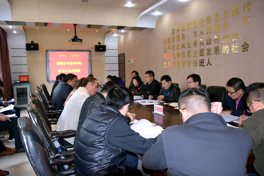 李校長帶領(lǐng)大家認(rèn)真學(xué)習(xí)黨的十九大報(bào)告