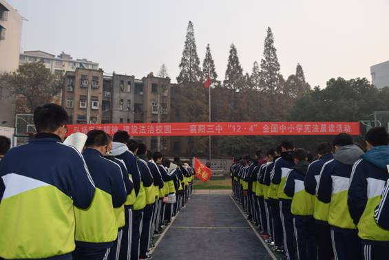 12月4日是中華人民共和國(guó)第四個(gè)“國(guó)家憲法日”,主題是“弘揚(yáng)憲法精神,建設(shè)法制中國(guó)”。襄陽三中隆重舉行憲法晨讀活動(dòng),由政教處、團(tuán)委主辦?;顒?dòng)從莊嚴(yán)的升旗儀式開始,由團(tuán)委副書記吉芳主持,政教處主任張東領(lǐng)讀,師生齊聲誦讀。學(xué)校通過憲法晨讀活動(dòng)、法制教育宣傳展板、電子顯示屏等弘揚(yáng)憲法精神,落實(shí)法制教育,增強(qiáng)廣大師生的法律意識(shí),引導(dǎo)師生做“學(xué)法、懂法、知法、護(hù)法、守法”的好公民。