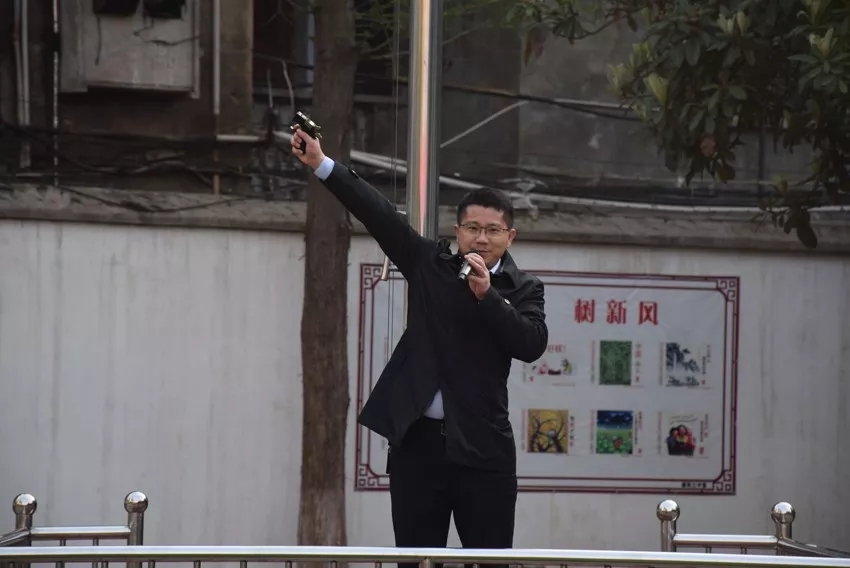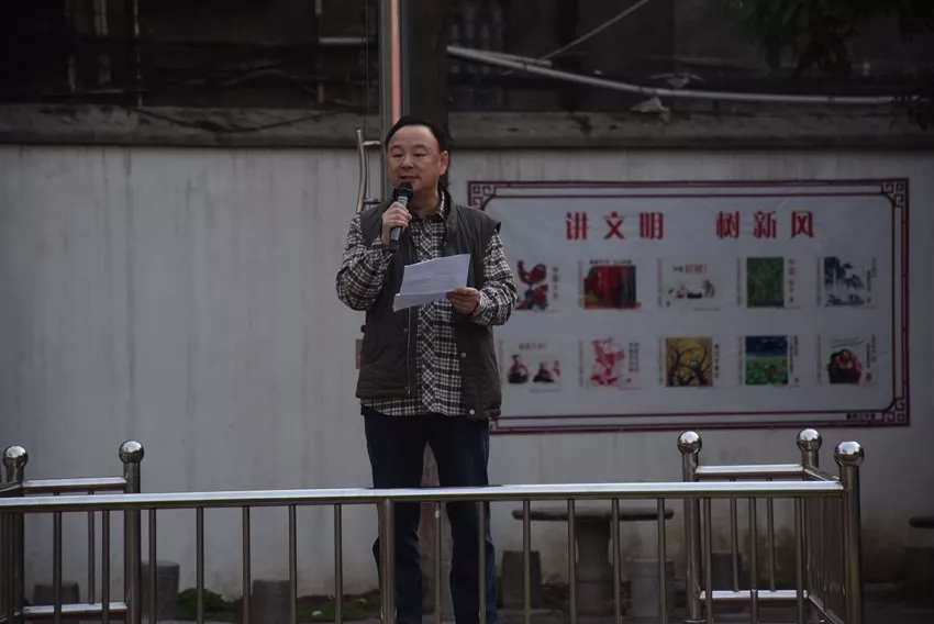 校長(zhǎng)李天艷宣布遠(yuǎn)足活動(dòng)開(kāi)始