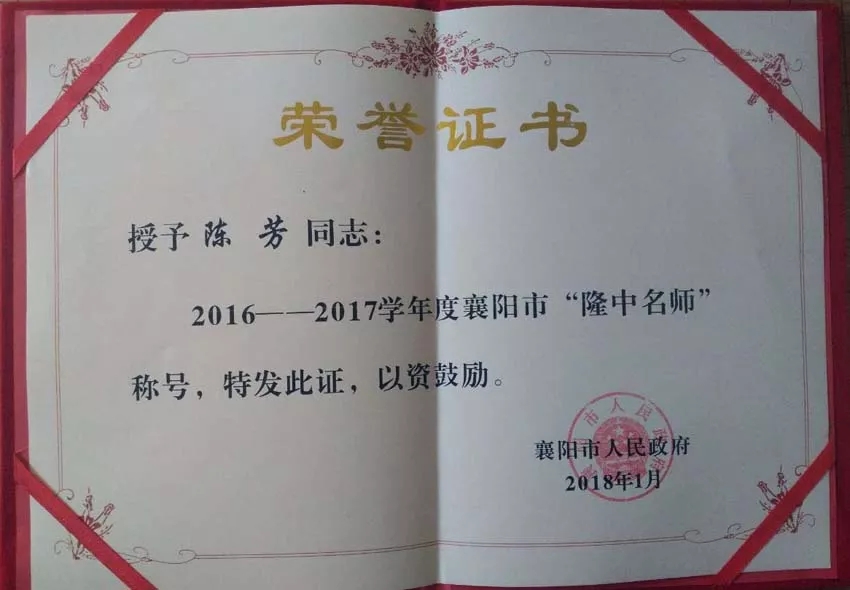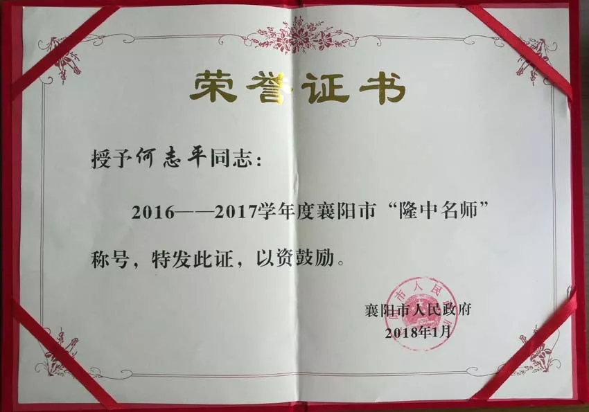 4月17日,襄陽市教育局隆重舉行2016—2017學(xué)年度新入選隆中名師、隆中名校長頒證儀式,襄陽三中何志平、陳芳老師被市人民政府授予“隆中名師”榮譽(yù)稱號。