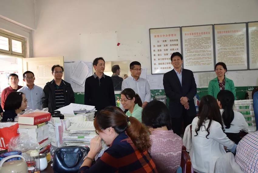 教育局領(lǐng)導(dǎo)一行來到高三年級教師辦公室。程局長代表局領(lǐng)導(dǎo)向奮戰(zhàn)在高考備考第一線的辛勤勞動者——高三教師致以誠摯的問候。程局長說,三中的環(huán)境是非常艱苦的,三中老師卻有著超乎尋常的敬業(yè)精神,所以高考成績?nèi)〉昧艘粋€又一個突破。程局長相信,隨著三中搬遷到新校區(qū),學(xué)校環(huán)境和條件將發(fā)生根本性好轉(zhuǎn),憑著三中教師執(zhí)著的敬業(yè)精神,三中必將創(chuàng)造新的輝煌。程局長指出,“幸福都是奮斗出來的”,高三老師很辛苦,但當(dāng)我們看到許多學(xué)子圓了大學(xué)夢,實現(xiàn)了許多家庭的期盼,為民族復(fù)興培養(yǎng)了人才,就實現(xiàn)了老師的人生價值,我們就會感到由衷的幸福。程局長殷切希望老師們擼起袖子加油干,認真?zhèn)淇迹茖W(xué)備考,奮戰(zhàn)到高考最后一刻,實現(xiàn)完美收官。