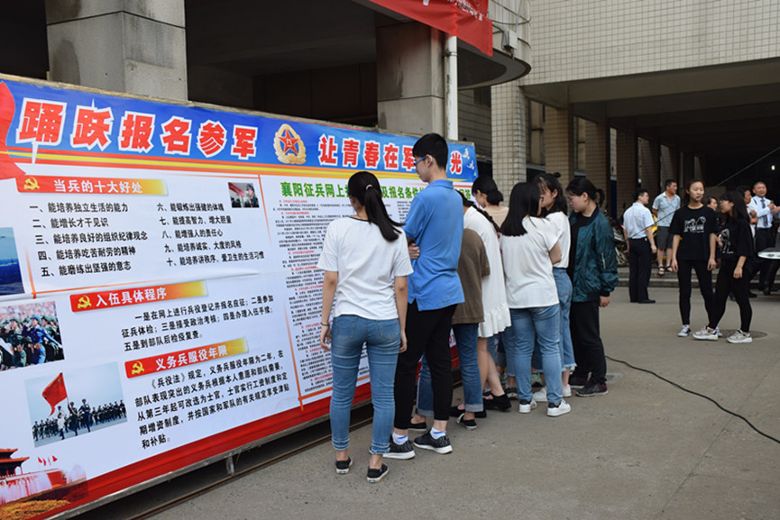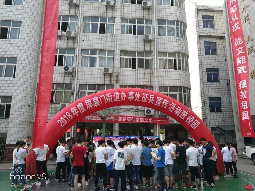 為加強愛國主義和國防教育,落實《襄陽市2018年度征兵工作實施方案》的文件精神,切實做好征兵宣傳工作,5月16日,屏襄門街道辦事處聯(lián)合我校開展了“征兵宣傳進校園”活動,主題是“貫徹實施國防法規(guī),自覺履行國防義務”。街道辦事處工作人員向前來咨詢的高二、高三年級同學認真講解襄陽市征兵工作的流程,為有意投身軍旅的同學們解惑答疑。