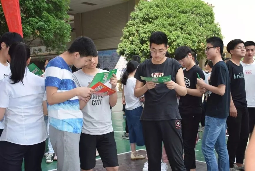 同學們認真閱讀征兵宣傳手冊