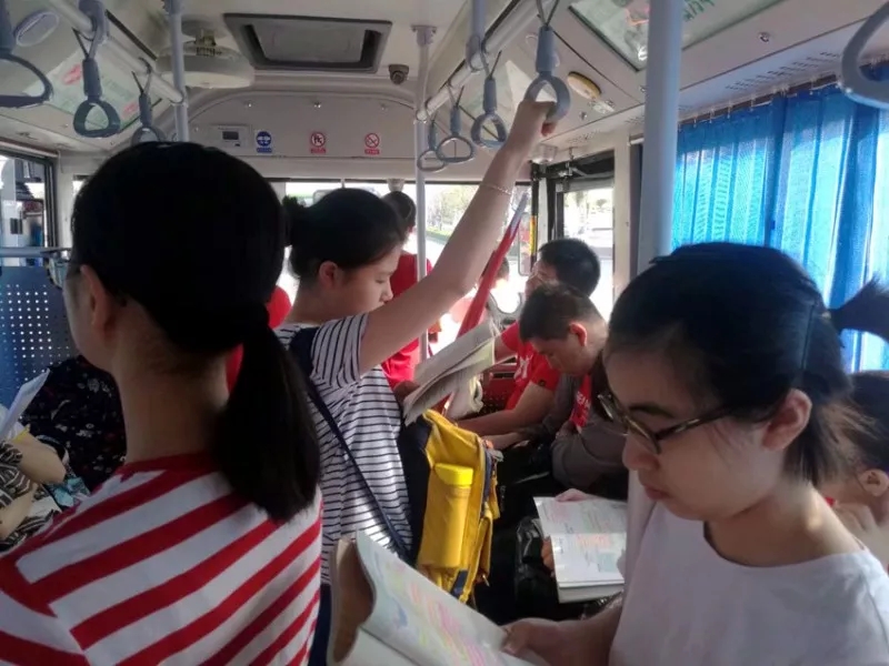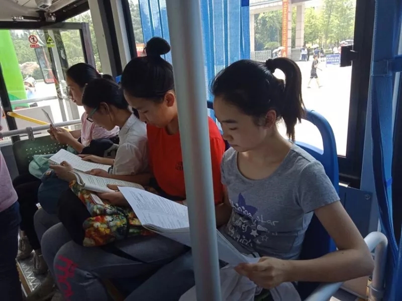 愛學(xué)習(xí)的三中學(xué)子,車上也刻苦