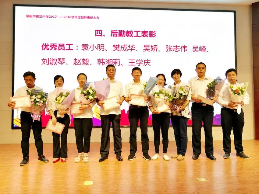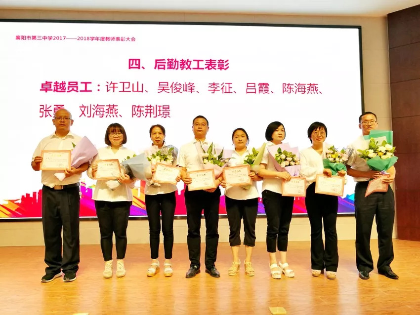 一線教師敬業(yè)愛崗、奮勇拼搏,后勤人員默默奉獻(xiàn)、提供保障。在襄陽(yáng)三中的功勞簿上,有一線教師的一半,也有后勤人員的一半!表彰會(huì)上共有139名一線老師獲獎(jiǎng),18名后勤人員獲獎(jiǎng)。