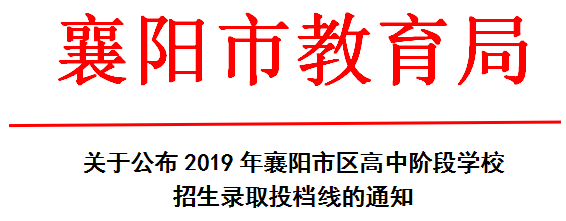根據(jù)《襄陽(yáng)市2019年普通高中招生錄取實(shí)施方案》(襄教發(fā)〔2019〕16號(hào))精神和高中階段學(xué)校招生計(jì)劃、考生志愿填報(bào)情況,“湖北省高中階段學(xué)校招生管理信息系統(tǒng)”已按規(guī)定程序及平行志愿錄取規(guī)則進(jìn)行了錄取投檔,現(xiàn)將襄陽(yáng)市區(qū)各高中學(xué)校填報(bào)志愿錄取投檔線予以公布。