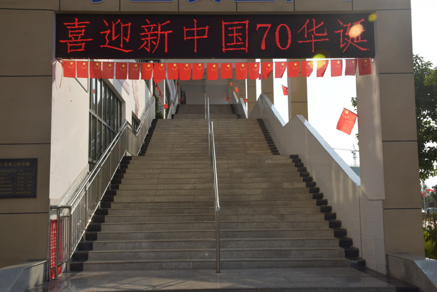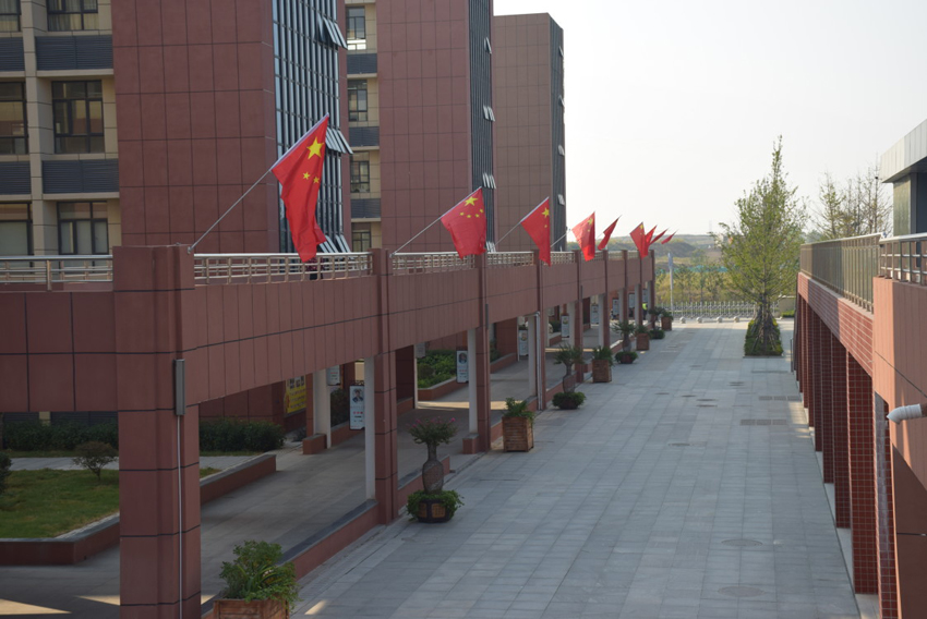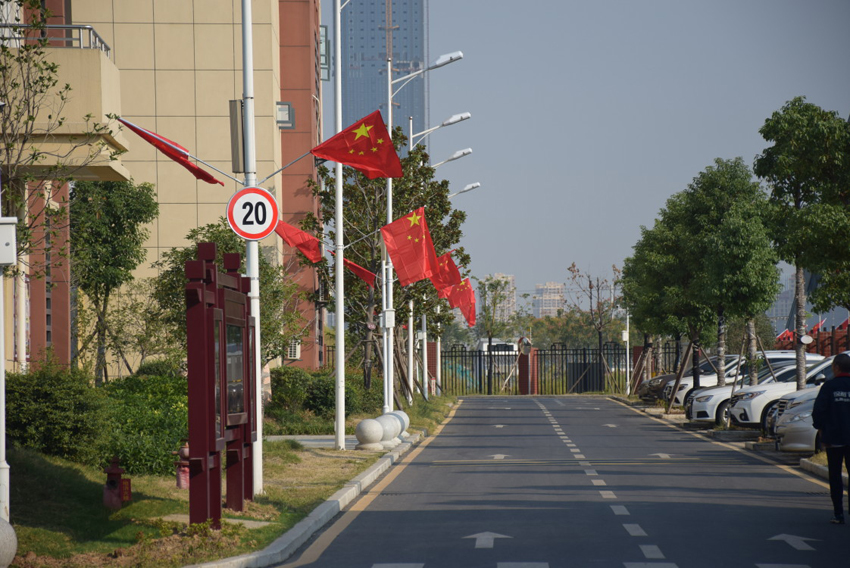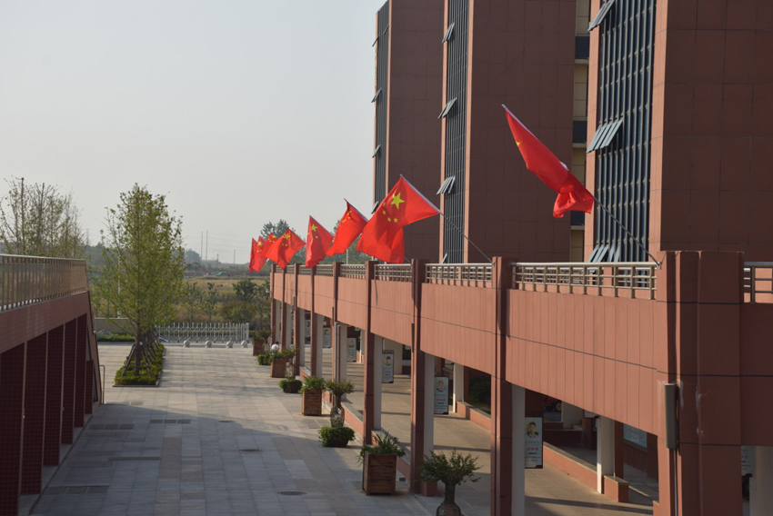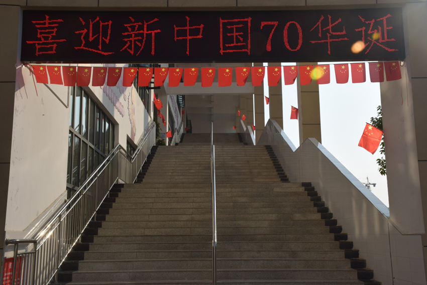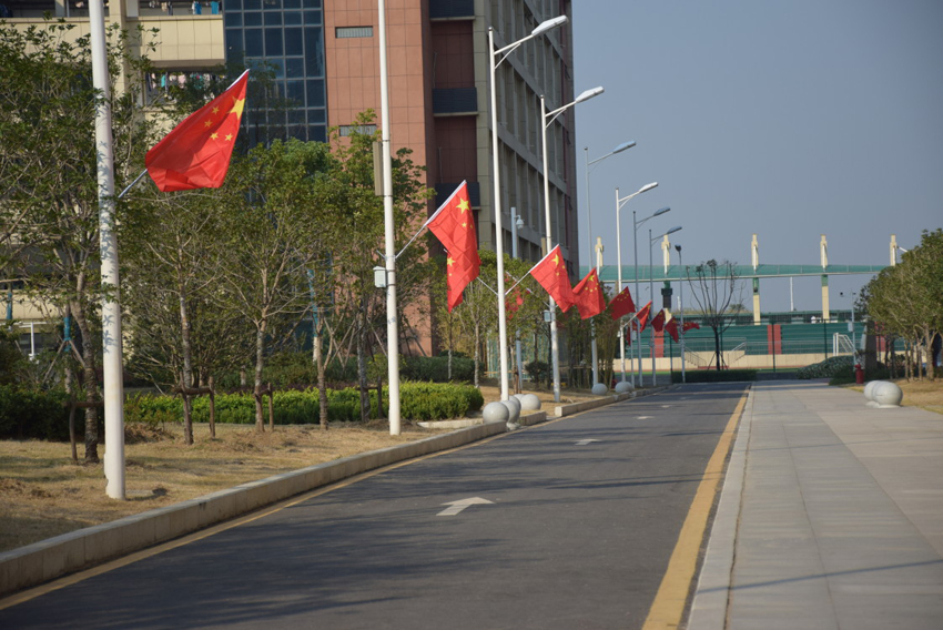 在新中國70華誕來臨之際,襄陽三中校園內(nèi)到處懸掛鮮艷的五星紅旗,向祖國真情告白。