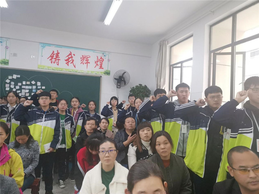 ▲學(xué)生喊響沖刺的誓言,堅(jiān)定必勝的信念!