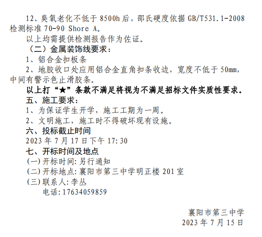 襄陽(yáng)三中教學(xué)樓連廊防滑處理采購(gòu)公告