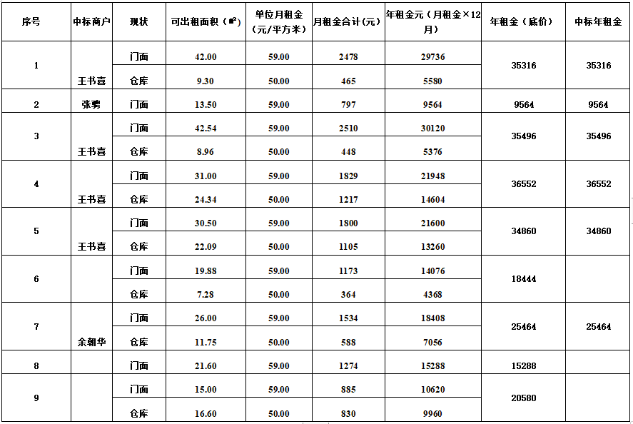2024年2月19日上午9:00-10:00在襄陽市第三中學(xué)明正樓310會議室,對門面進(jìn)行了公開招租,確定以下商戶為本次中標(biāo)商戶: